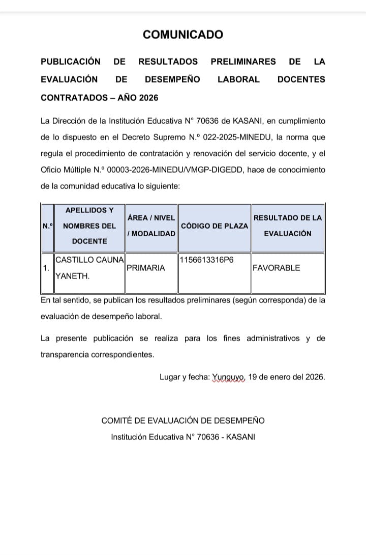 RESULTADOS PRELIMINARES IEP N° 70636 DE KASANI